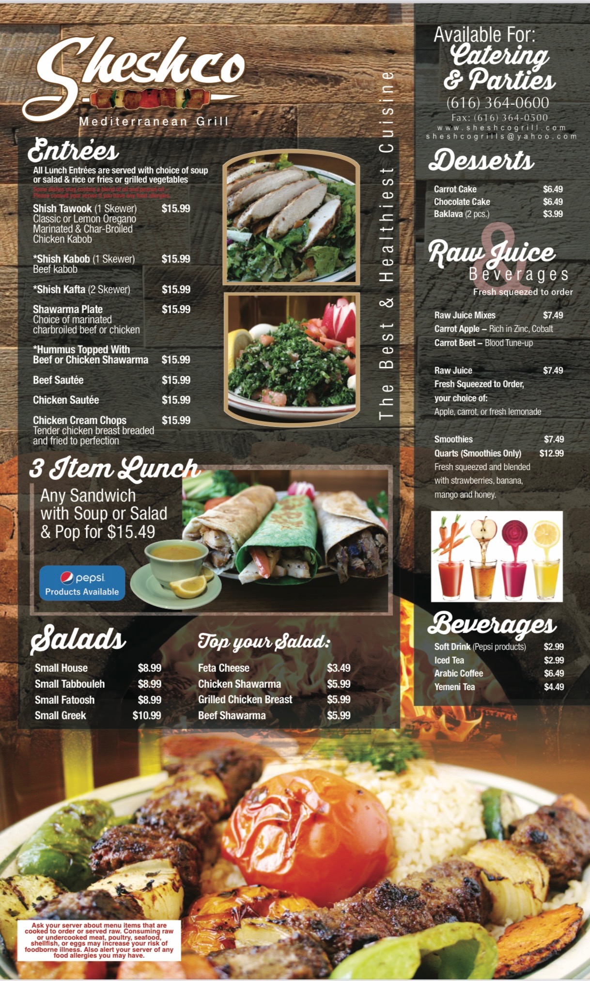 Order online or visit us today to savor the authentic flavors of the Mediterranean. Discover why SheshCo Grill is the best choice for healthy, delicious dining in Grand Rapids.